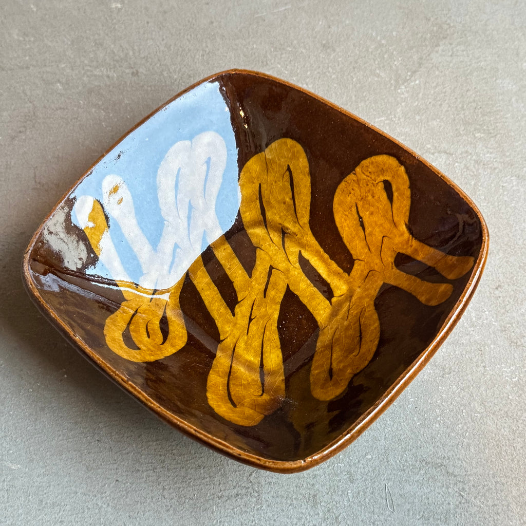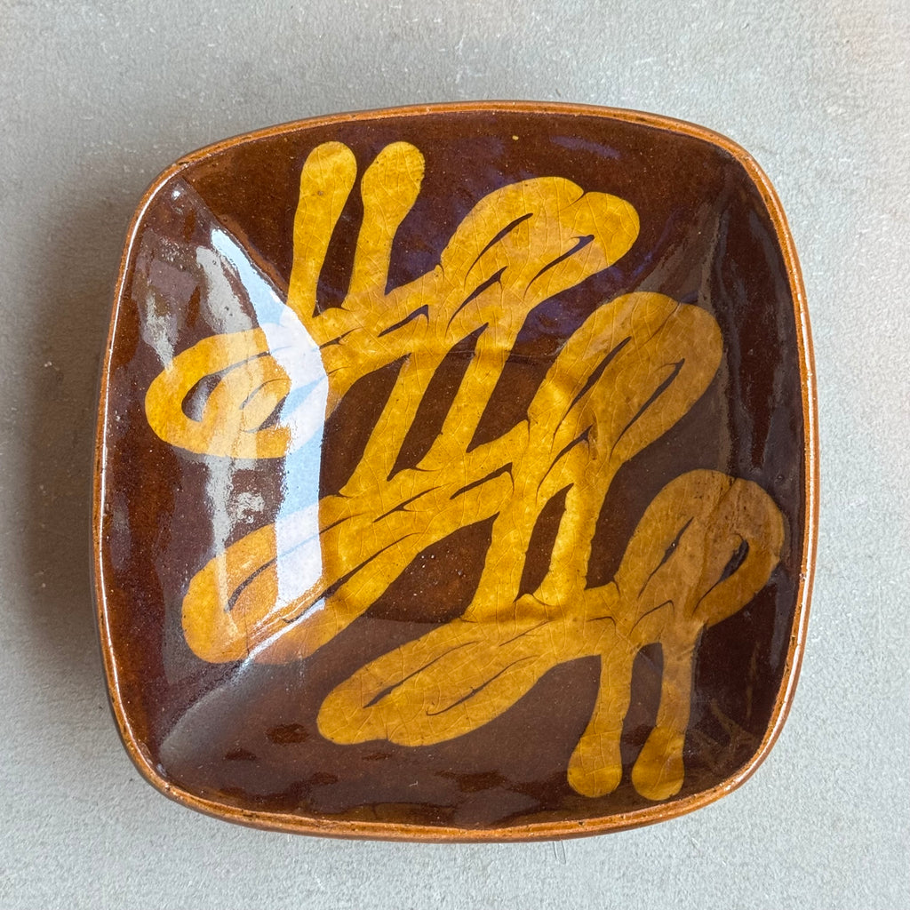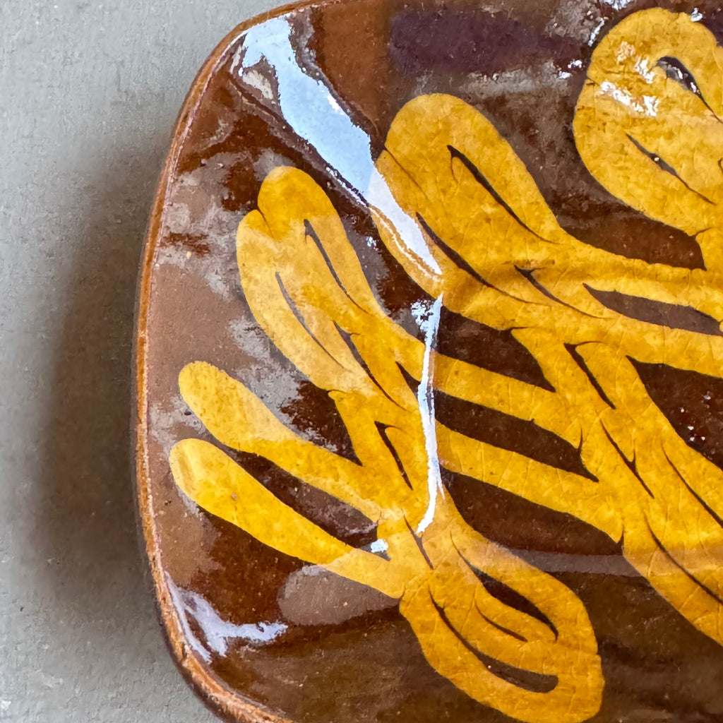 齊藤十郎/ スリップウェア角皿(2本グルグル)