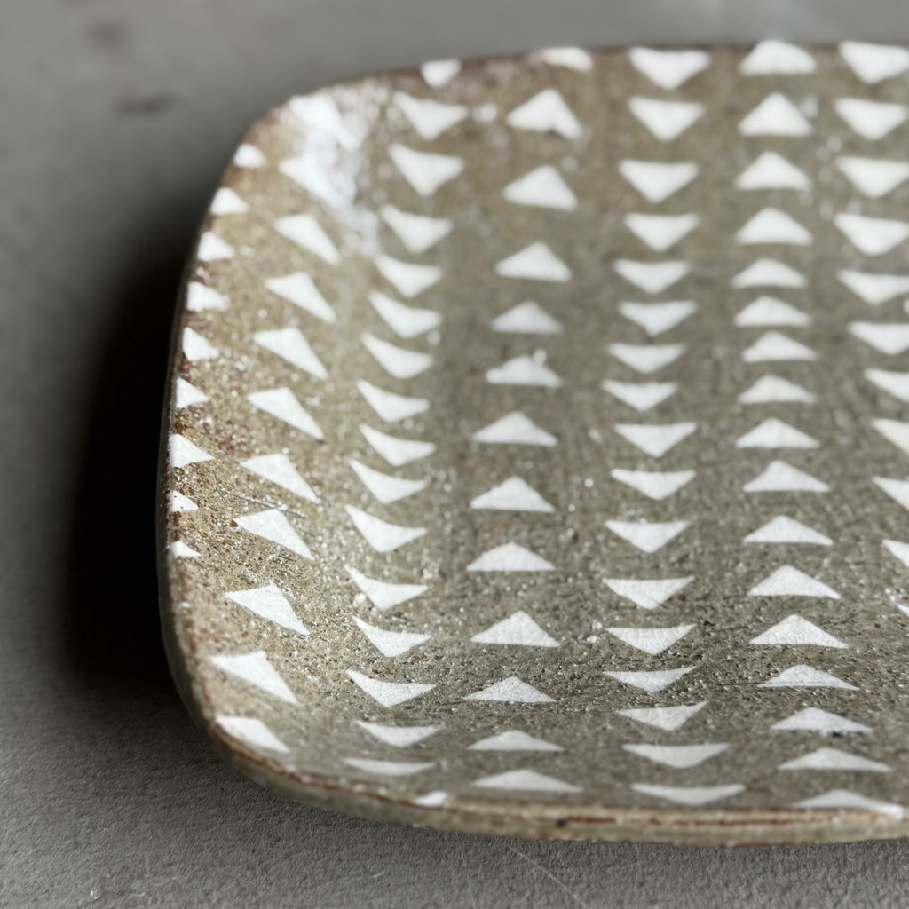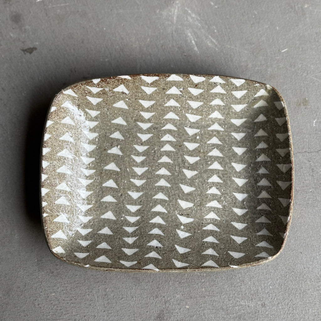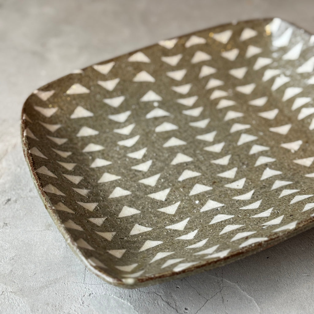 三角の模様が魅力的な象嵌皿です。