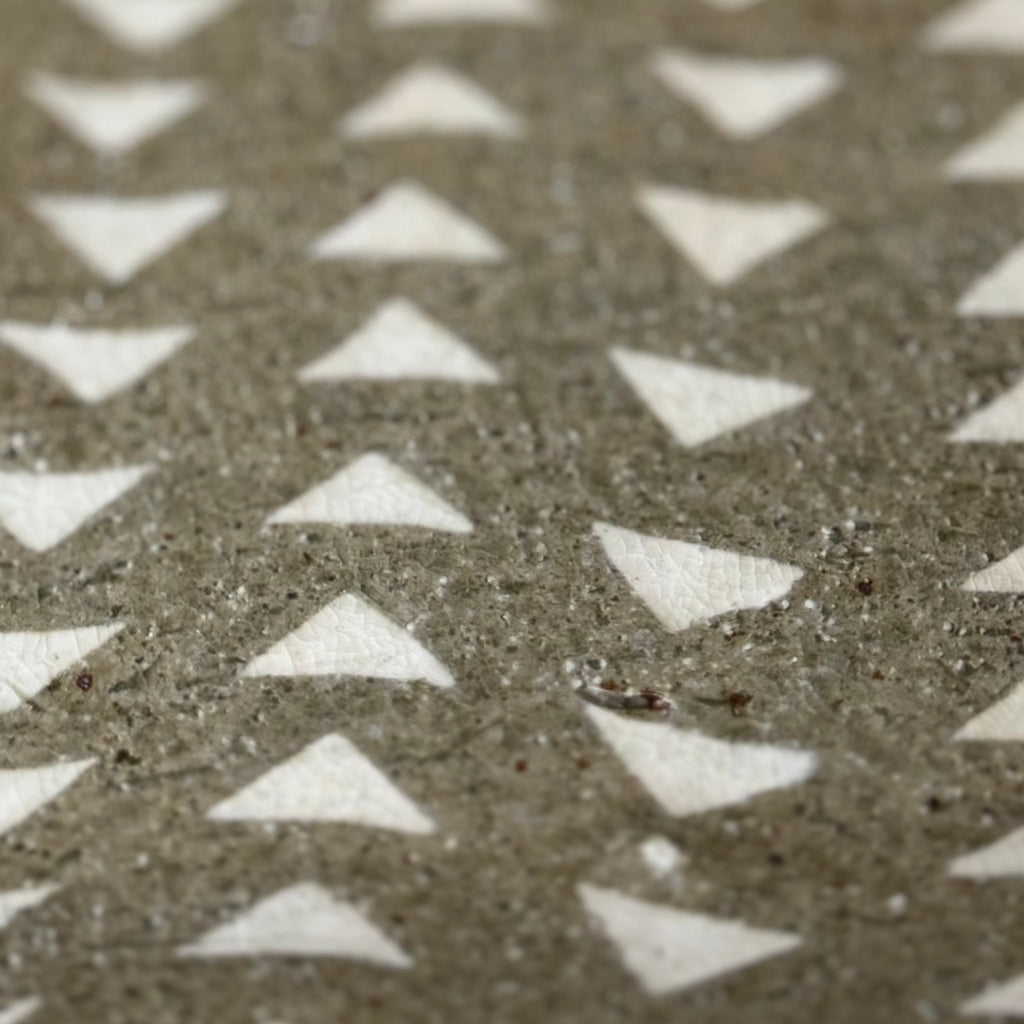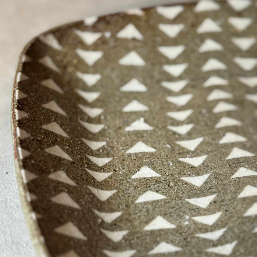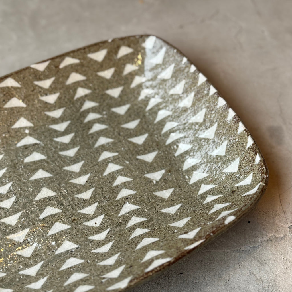 三角の模様が魅力的な象嵌皿です。